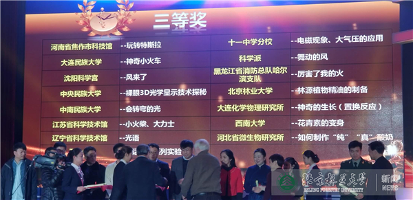 我校选手汇演的自选实验和常规实验分别是“林源植物精油的制备”和“模拟心肺复述”,怀着对林业事业的挚爱,通过短短的4分钟时间林业植物精油的制备方法深入浅出地展示给社会公众,普及科学知识,展示了林业院校的风采。