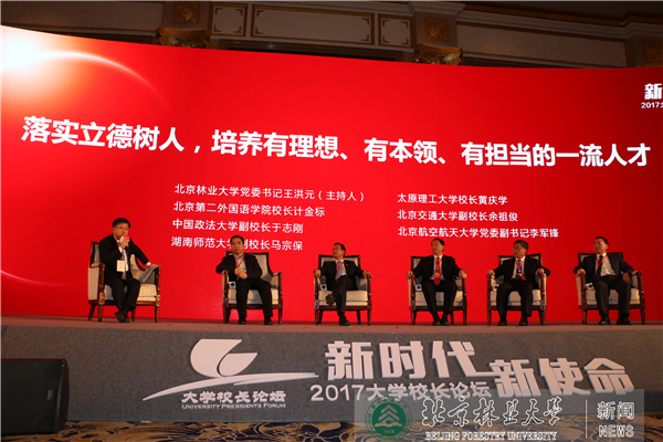 绿色新闻网报道 12月16日,由人民日报政文部指导、人民网主办的2017大学校长论坛在天津举行。本次论坛主题为 “新时代,新使命”,来自全国40多所高校的书记、校长齐聚论坛,为建设我国高等教育强国献计献策、凝聚共识。我校党委书记王洪元出席论坛,并担任“落实立德树人,培养有理想、有本领、有担当的一流人才”分论坛主持人。